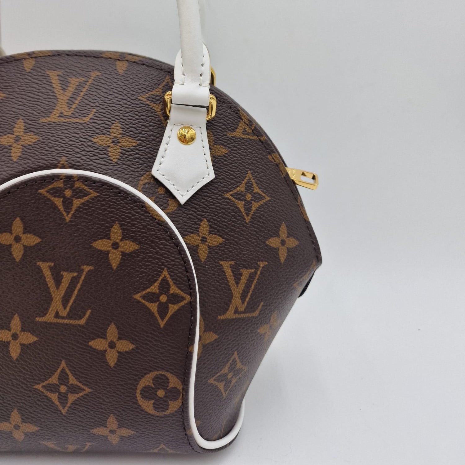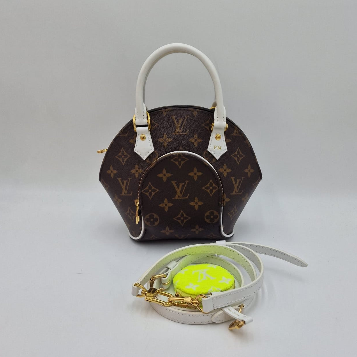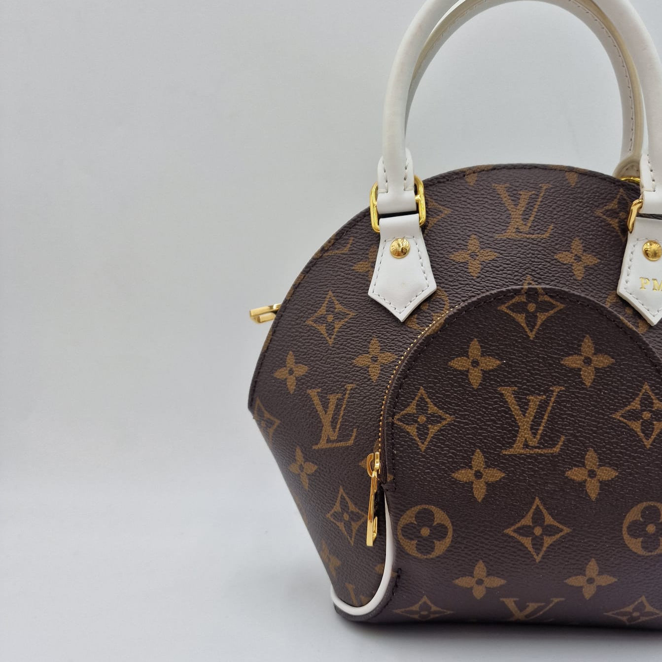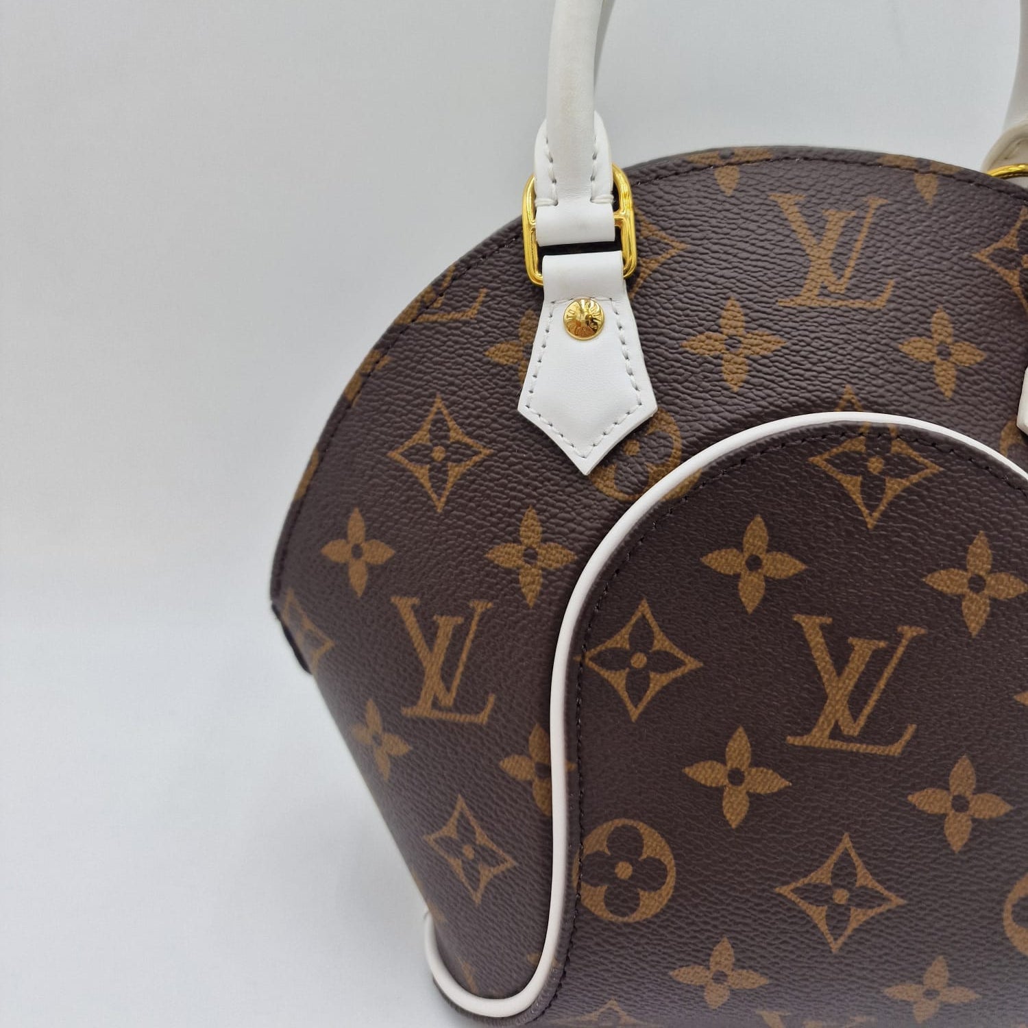 A bolsa Ellipse foi inspirada num modelo de arquivo raro. Esta edição modernizada é confeccionada com a clássica combinação de canvas Monogram, acabamento em couro branco e ferragens douradas. A silhueta moderna e o charme vintage da bolsa a tornam uma escolha elegante para o dia a dia. A alça removível pode ser ajustada para uso no ombro ou transversal.