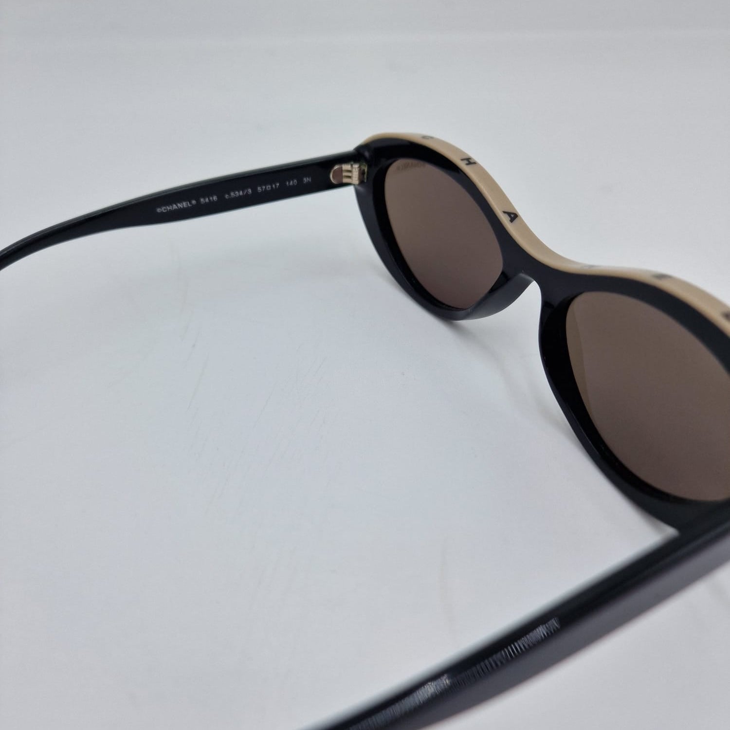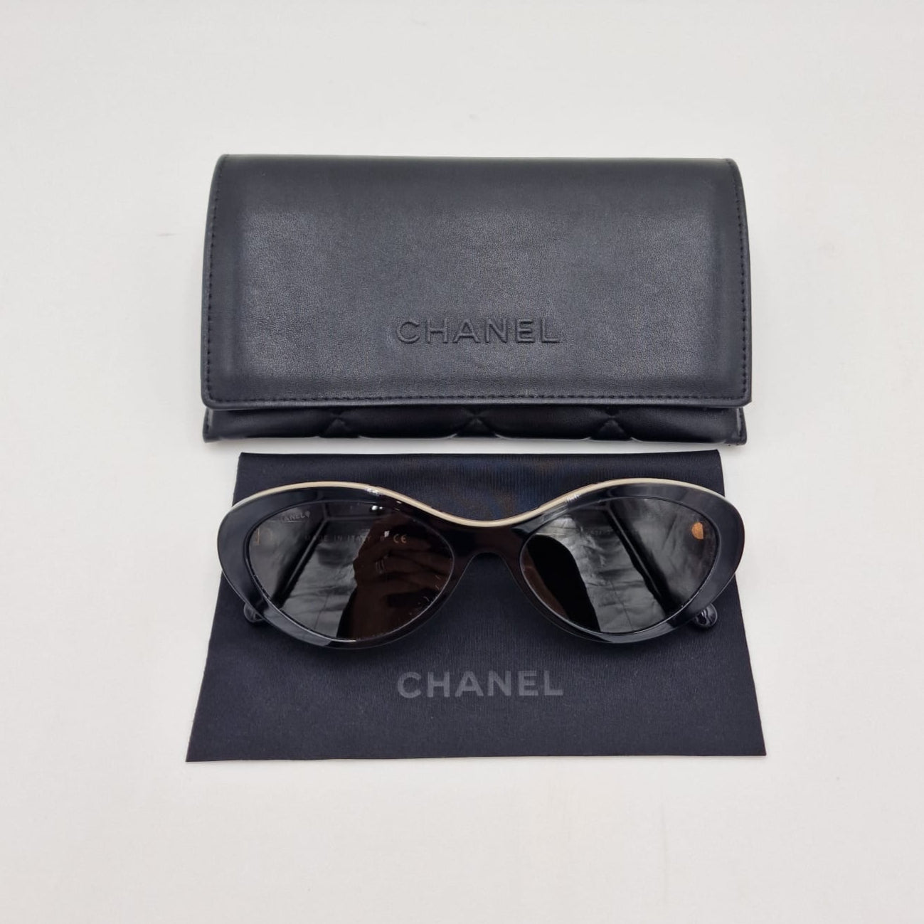Para complementar o seu look, estes óculos de sol em acetato preto e bege com logo lateral Chanel.