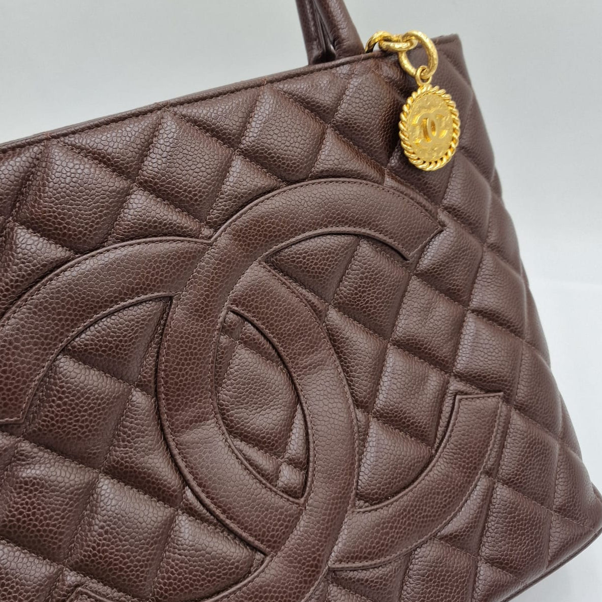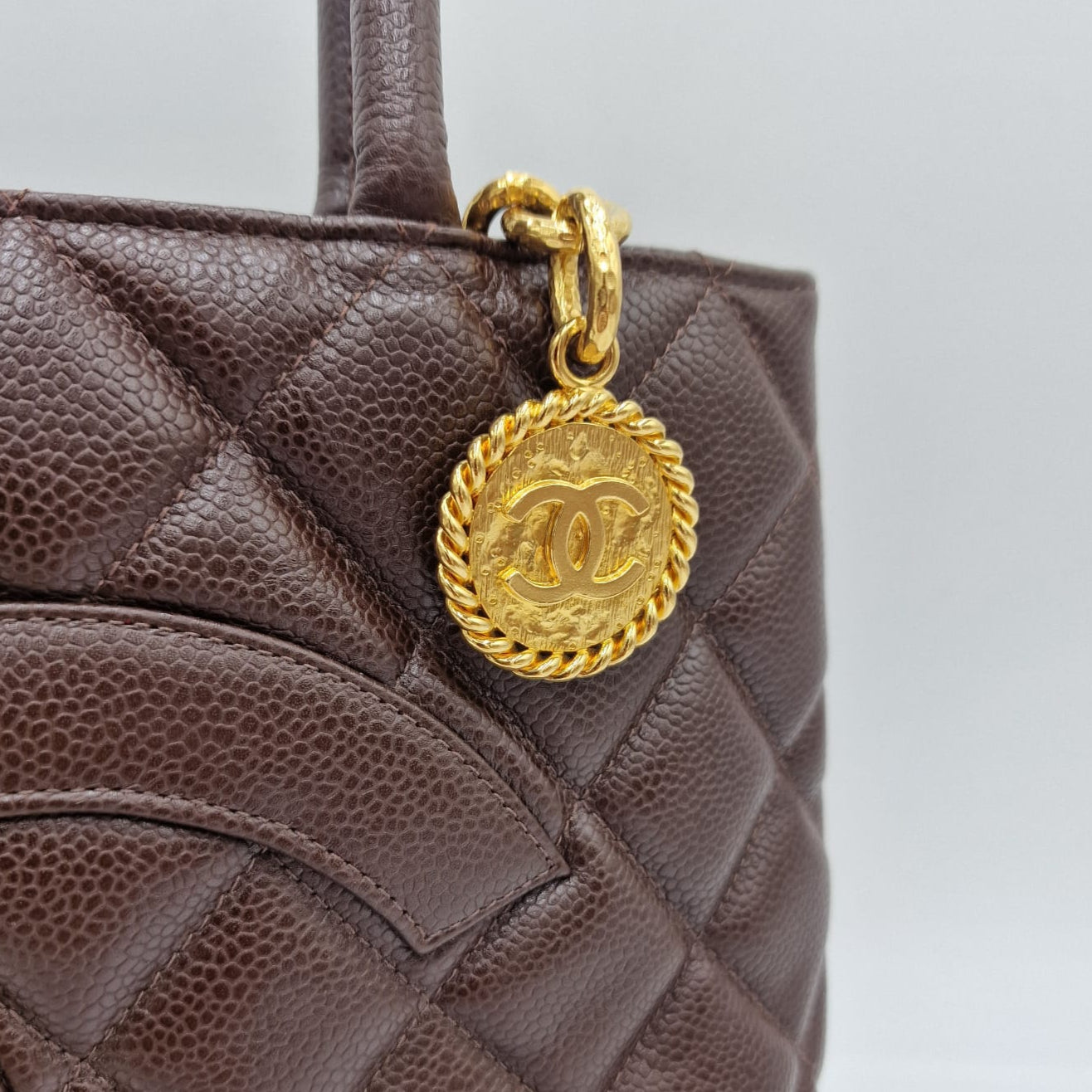A Médallion da Chanel foi lançada e desenhada por Karl Lagerfeld em 2005 e apresenta um grande medalhão com o logotipo da CC no centro. Rapidamente se tornou a favorita entre celebridades e mulheres comuns. Em 2007, a Chanel lançou uma edição limitada da bolsa tote Médallion, que apresentava um medalhão com o logotipo da CC incrustado de diamantes, e custava $26.000! Possui hardware dourado, e o interior da bolsa é feito de couro.
