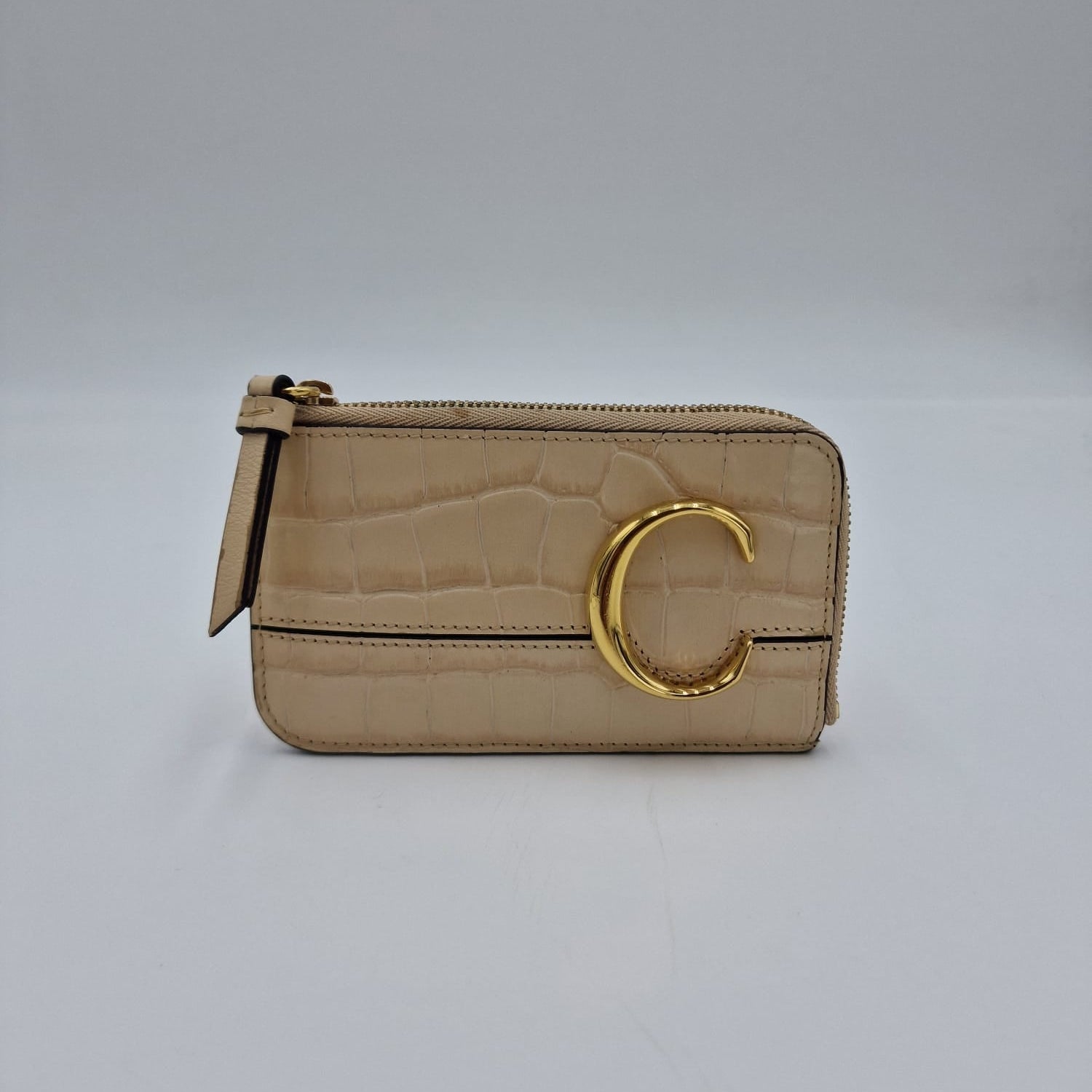 Porta cartões Chloé confeccionado em pele. Com  hardware dourado, possui compartimento central com fecho e compartimentos para cartões.