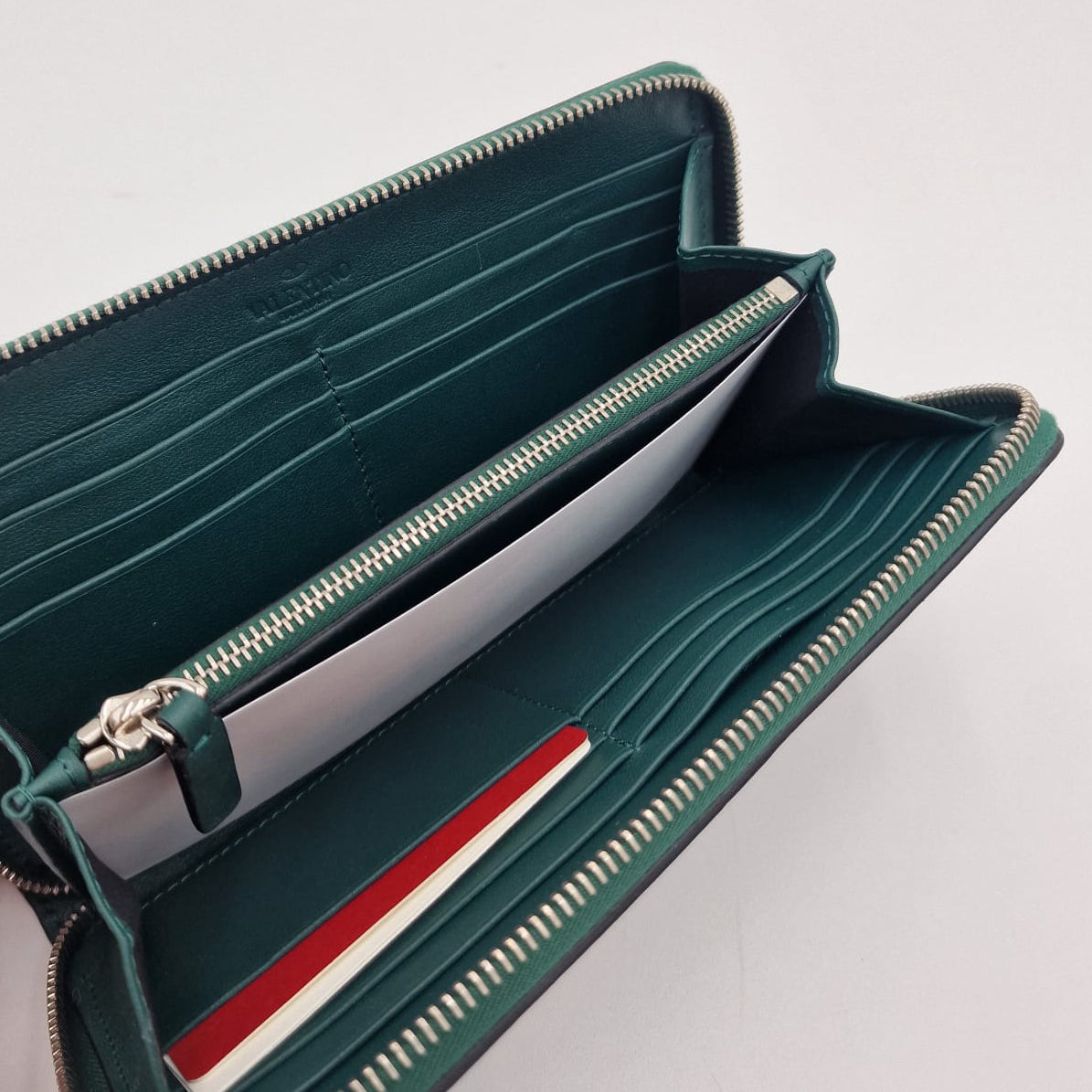 Monedero Valentino Roman Stud de piel. El Roman Stud, una versión del icónico diseño Rockstud, adorna este tarjetero de la colección Valentino Garavani.