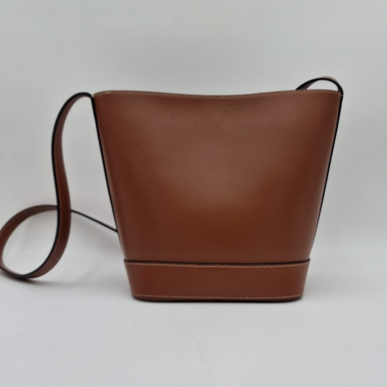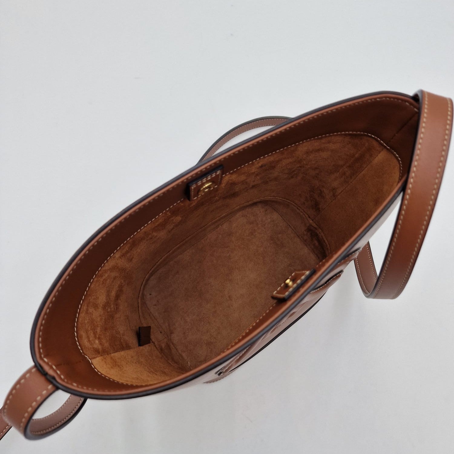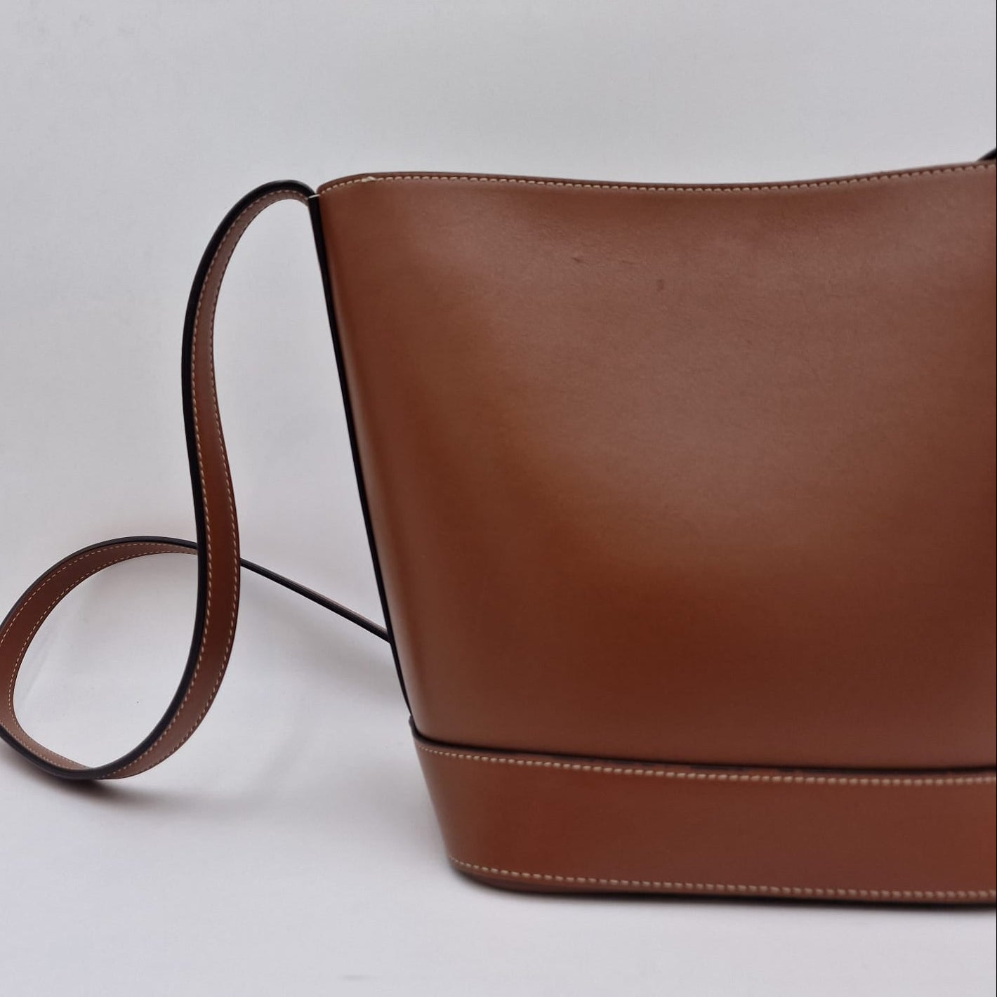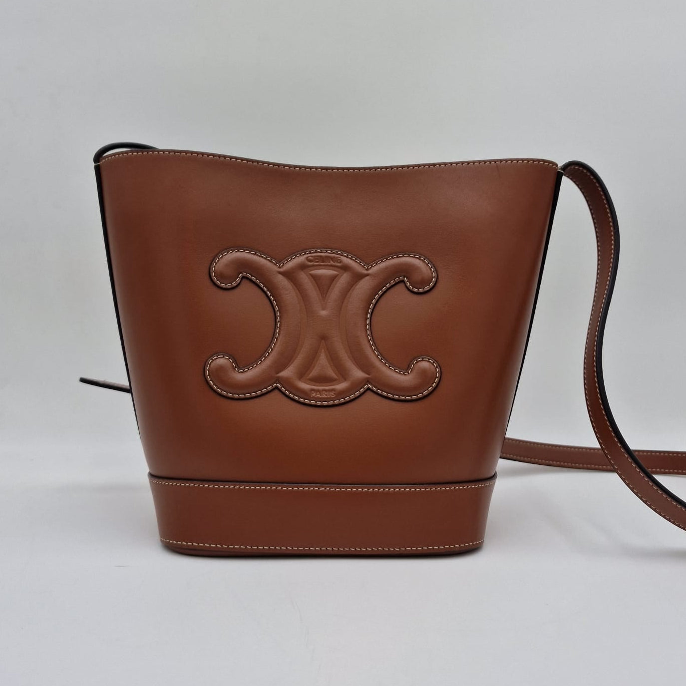 Celine Triomphe Bucket em couro de vitelo e forro em couro de vitelo em camurça. Possui hardware dourado e alça ajustável para carregar ao ombro ou à tiracolo!