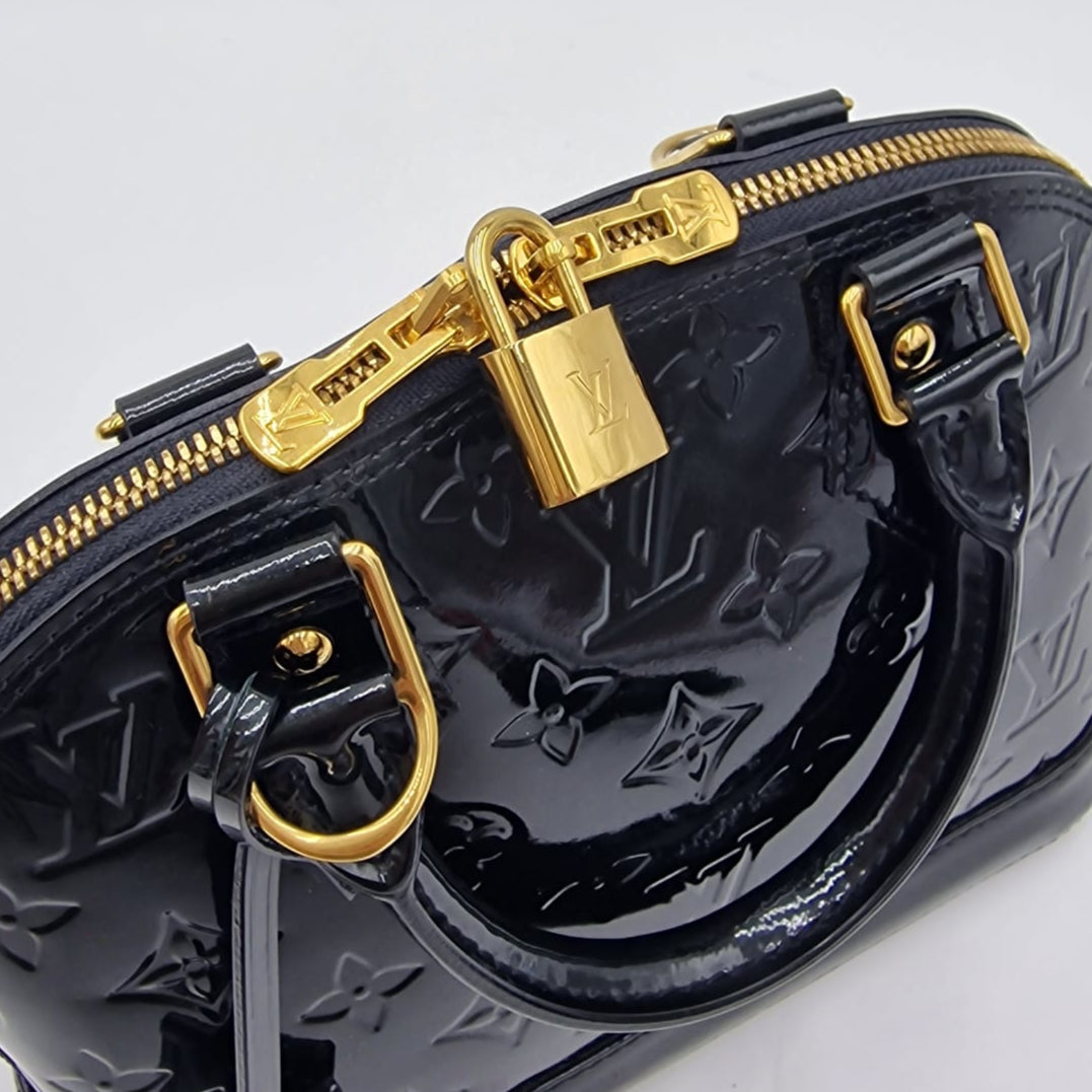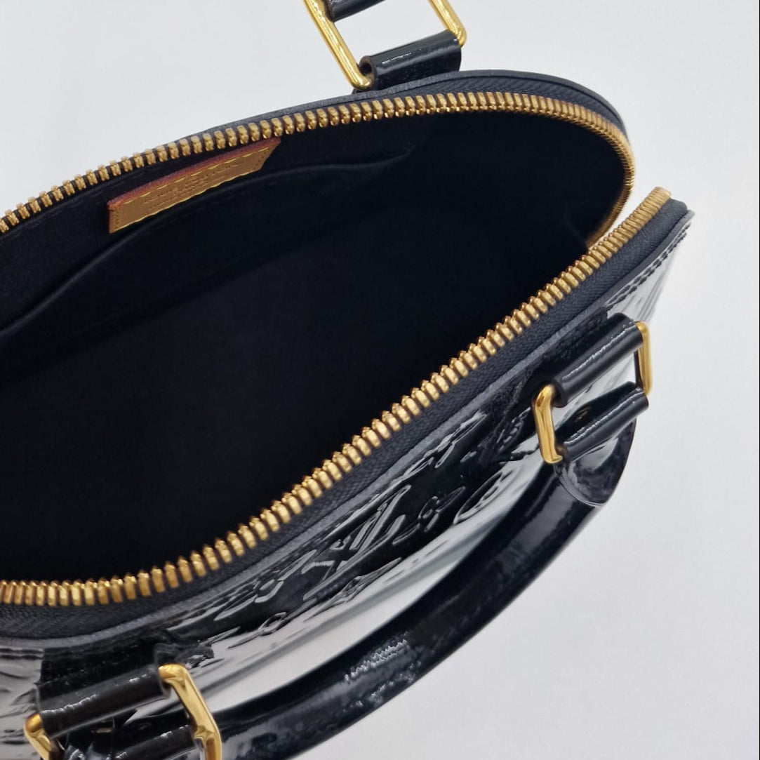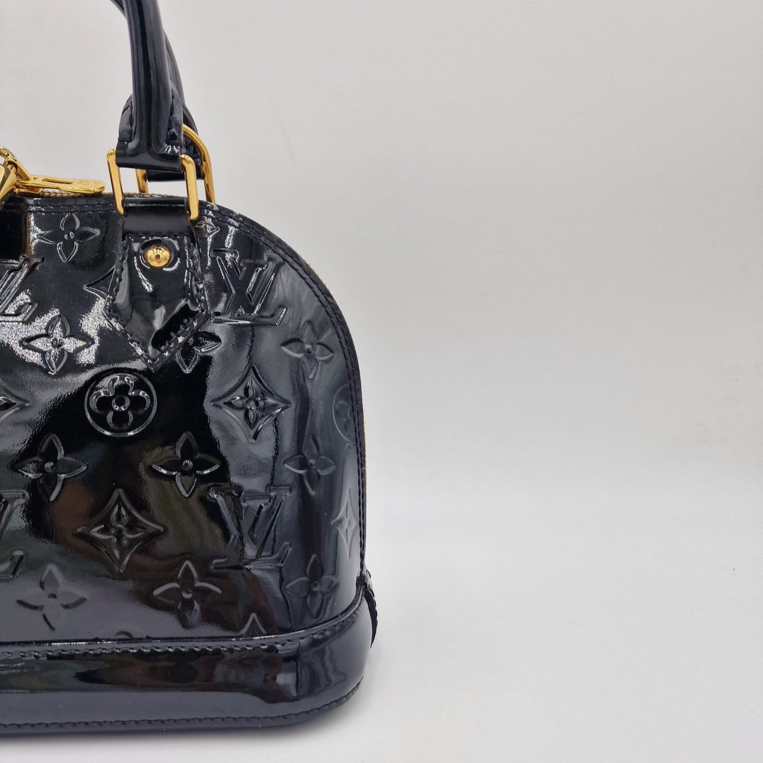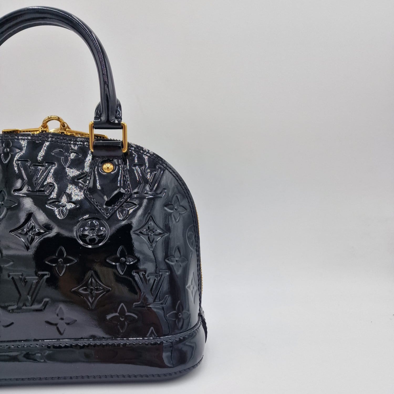 A bolsa Alma BB remonta a sua linhagem ao original Art Déco, introduzido em 1934. Este modelo é feito de verniz monogram emblemático, texturizado e profundamente tingido exclusivo da Maison.