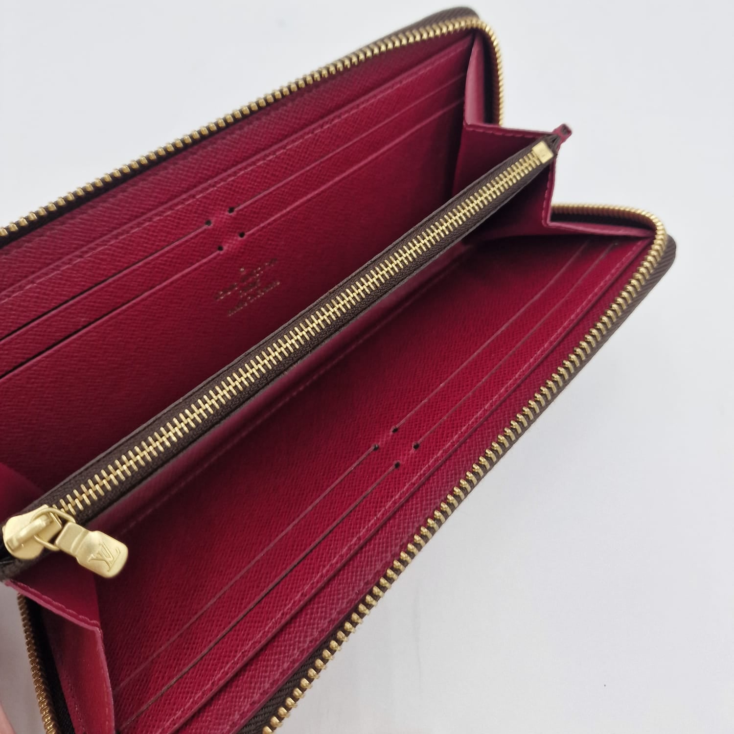 A carteira Clémence combina o histórico canvas Monogram da Louis Vuitton com um forro colorido em couro granulado. Este design fino abre-se para revelar um interior bem organizado com dois compartimentos grandes, um bolso para moedas com fecho e vários compartimentos para cartões. Com acabamento de fecho de couro refinado, também pode ser usada como clutch.